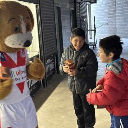 Boots often makes appearances around St Helens at a variety of events and sessions so keep your eye out for him. Boots will also make appearances on gamedays at the Totally Wicked Stadium, as he meets fans pitch side before the games whilst also taking photos with everyone, whilst also showing up at the occasional away game.