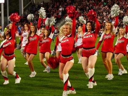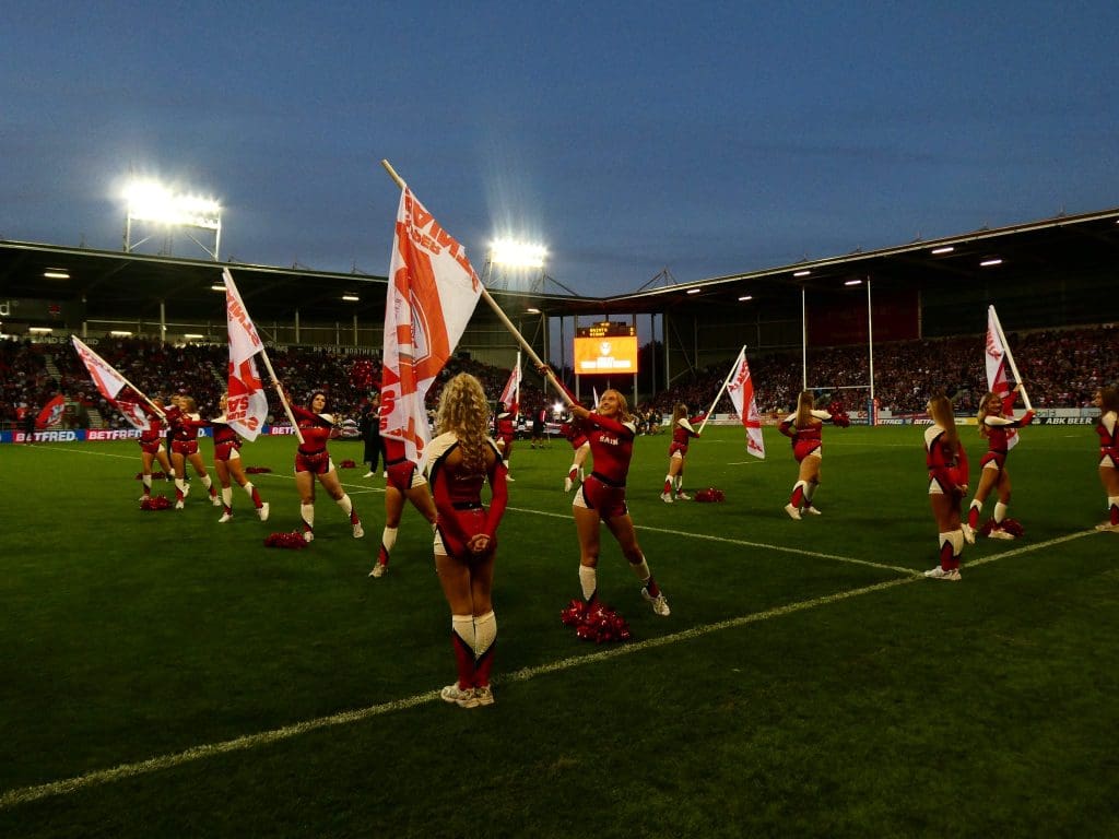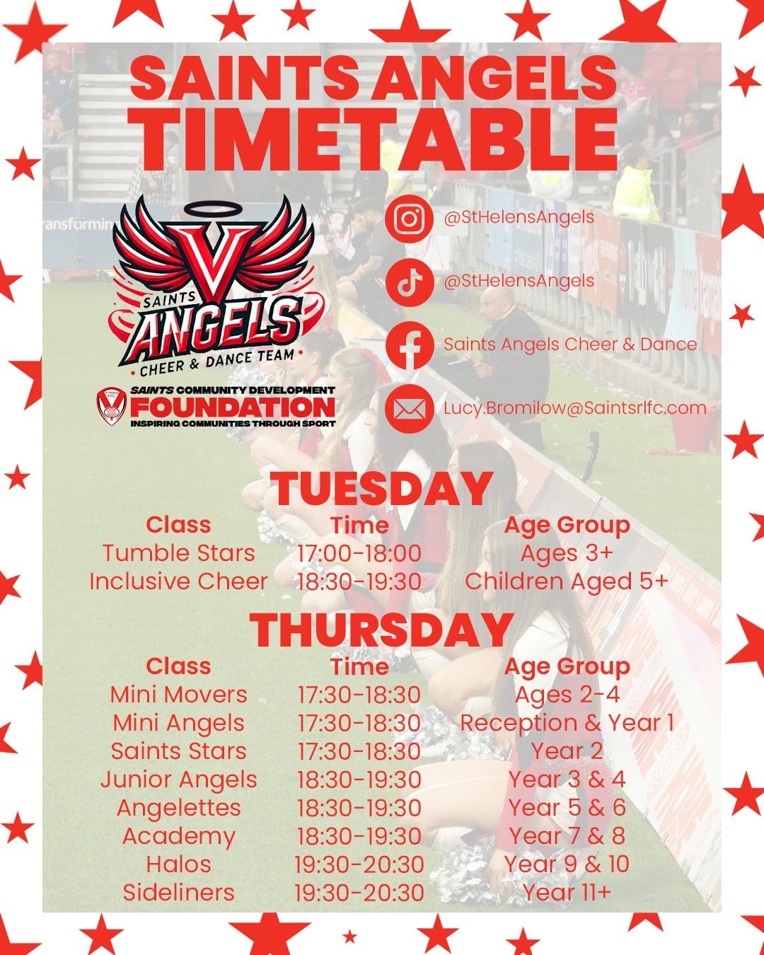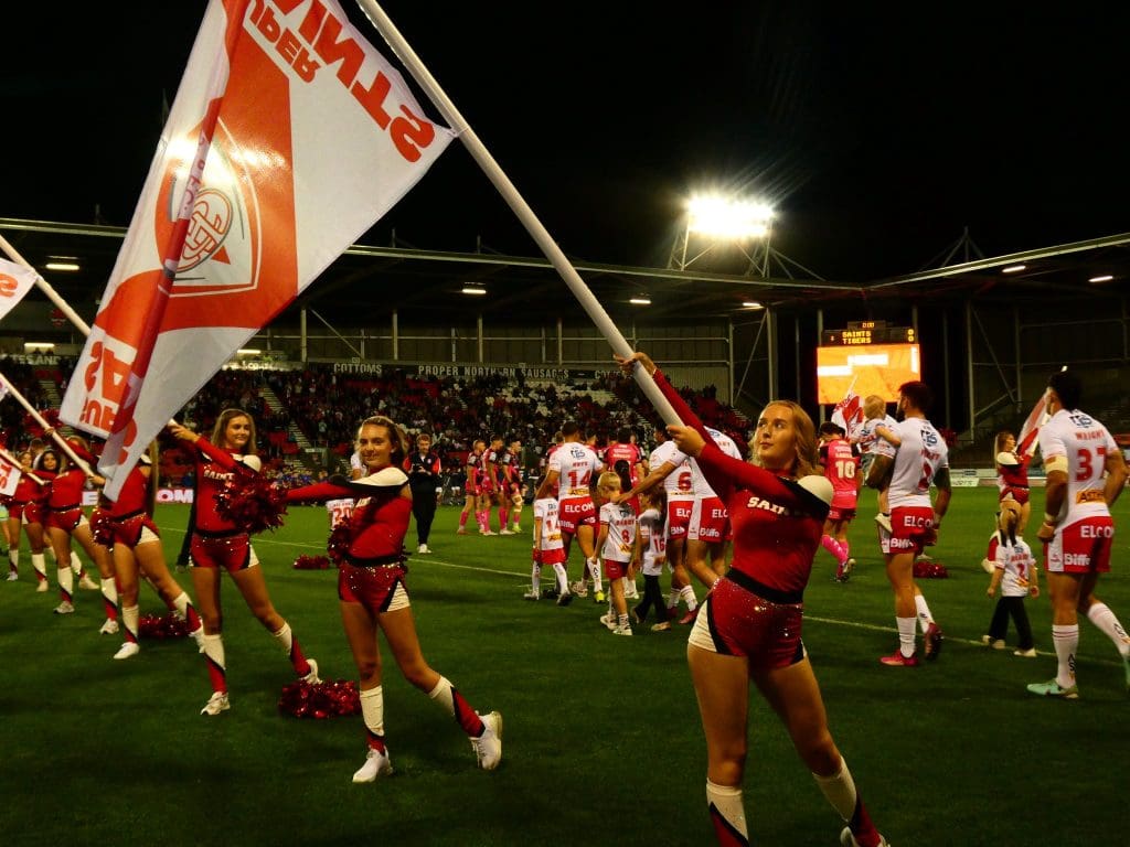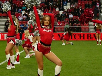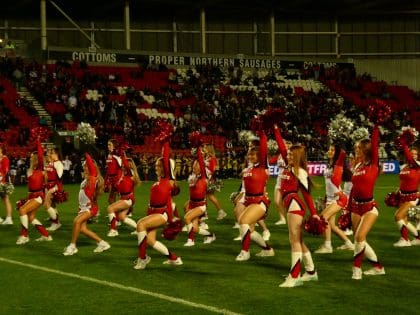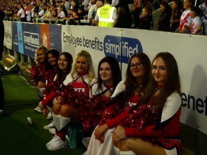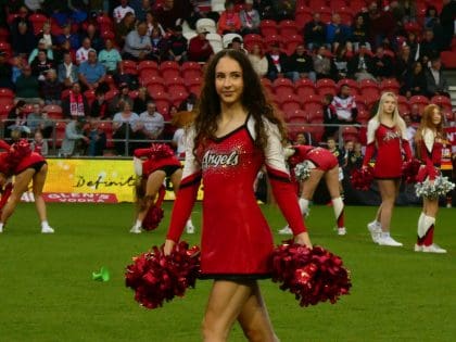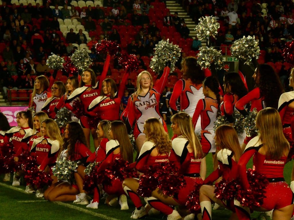The Saints Angels are the official Cheerleader Team at St Helens R.F.C. The Angels, who are qualified instructors, work with groups across Merseyside. The group are also a part of the SCDF and regularly run camps for aspiring cheerleaders aged between 6-15.