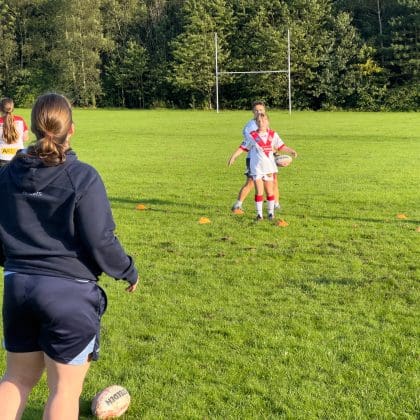 Week Eleven of RugBees took place last night at Portico Vine. St Helens Women’s, Katie Mottershead was joined by Saints’ half-back, Amy Taylor, and u19’s Lead Coach, Tom McBride for the evening.
