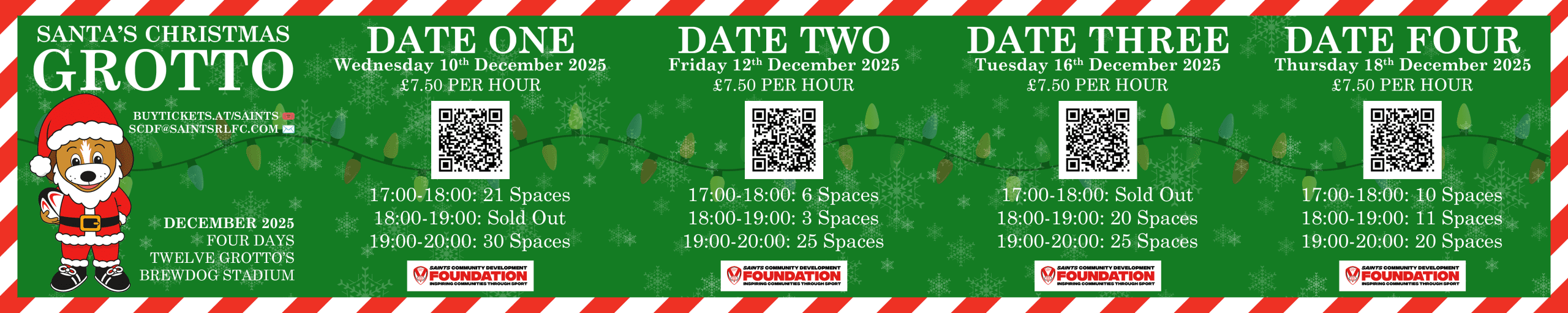 Santa’s Christmas Grotto returns to the BrewDog Stadium from next week, with four dates of events set to take place at the home of the Saints!