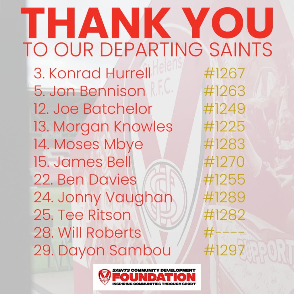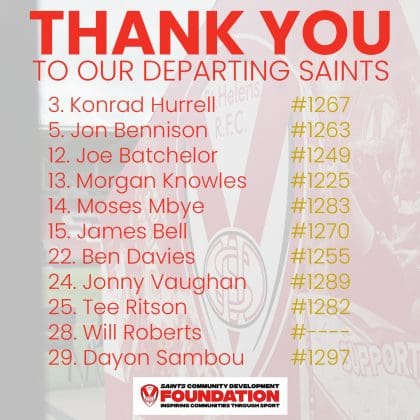 Following the conclusion of the 2025 campaign, the Saints Community Development Foundation would like to say thank you to our departing Saints!
