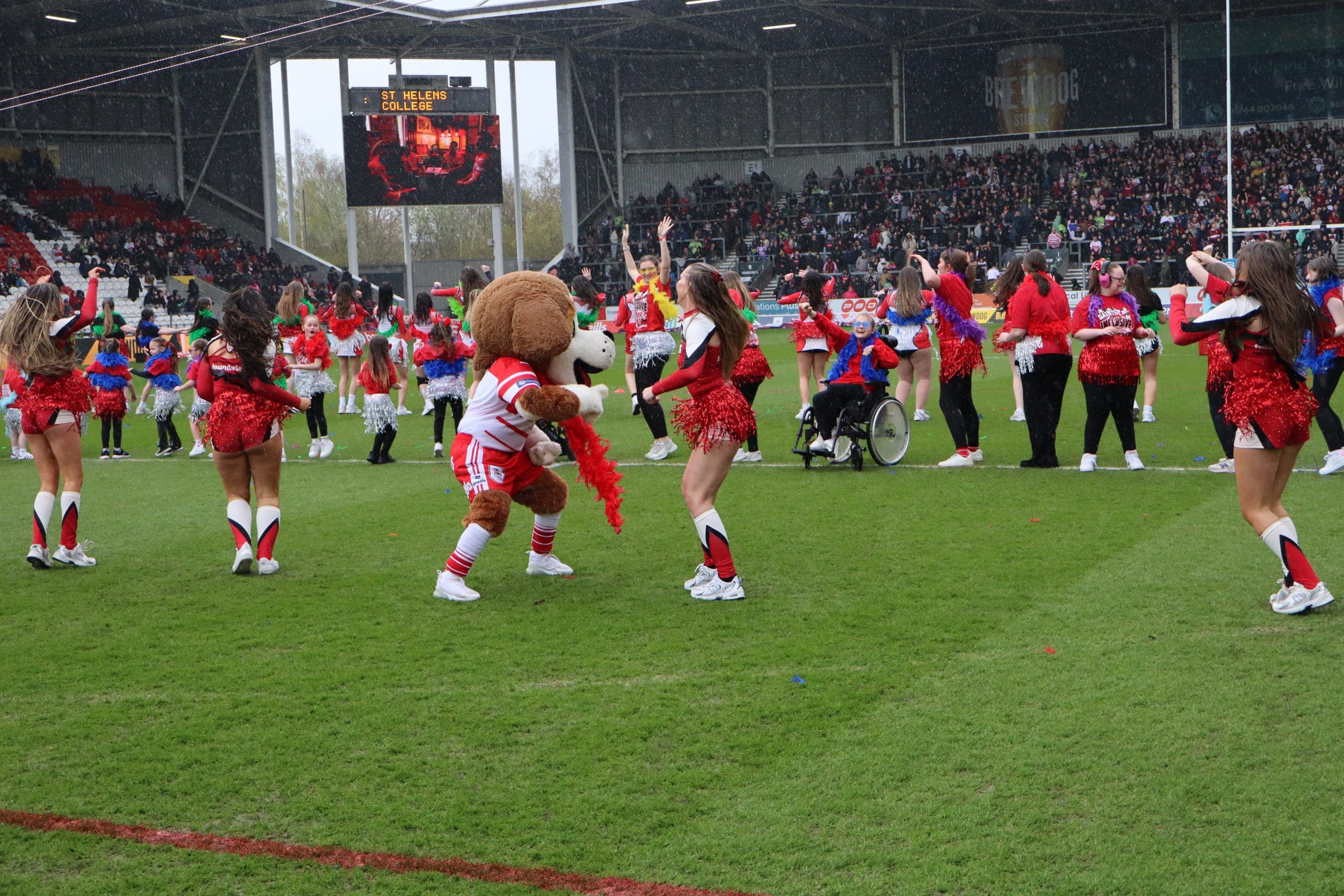 Our Cheer & Dance teams then performed a mass dance routine in the middle of the pitch facing the West Stand in the pouring rain.
