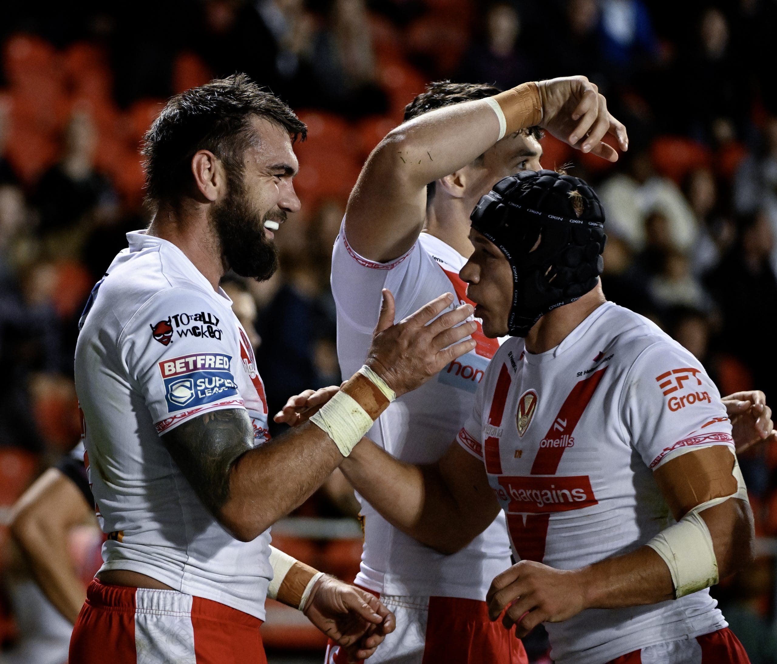 Tate went over again soon after by collecting a Sam Wood pass, Hoy adding the extras. Saints levelled just after the half-hour mark, as Feldt collected Jonny Lomax’s high kick to score. James Bell edged Saints ahead just before the break, with Feldt adding the extras, 16-10 the Red V led at half time.