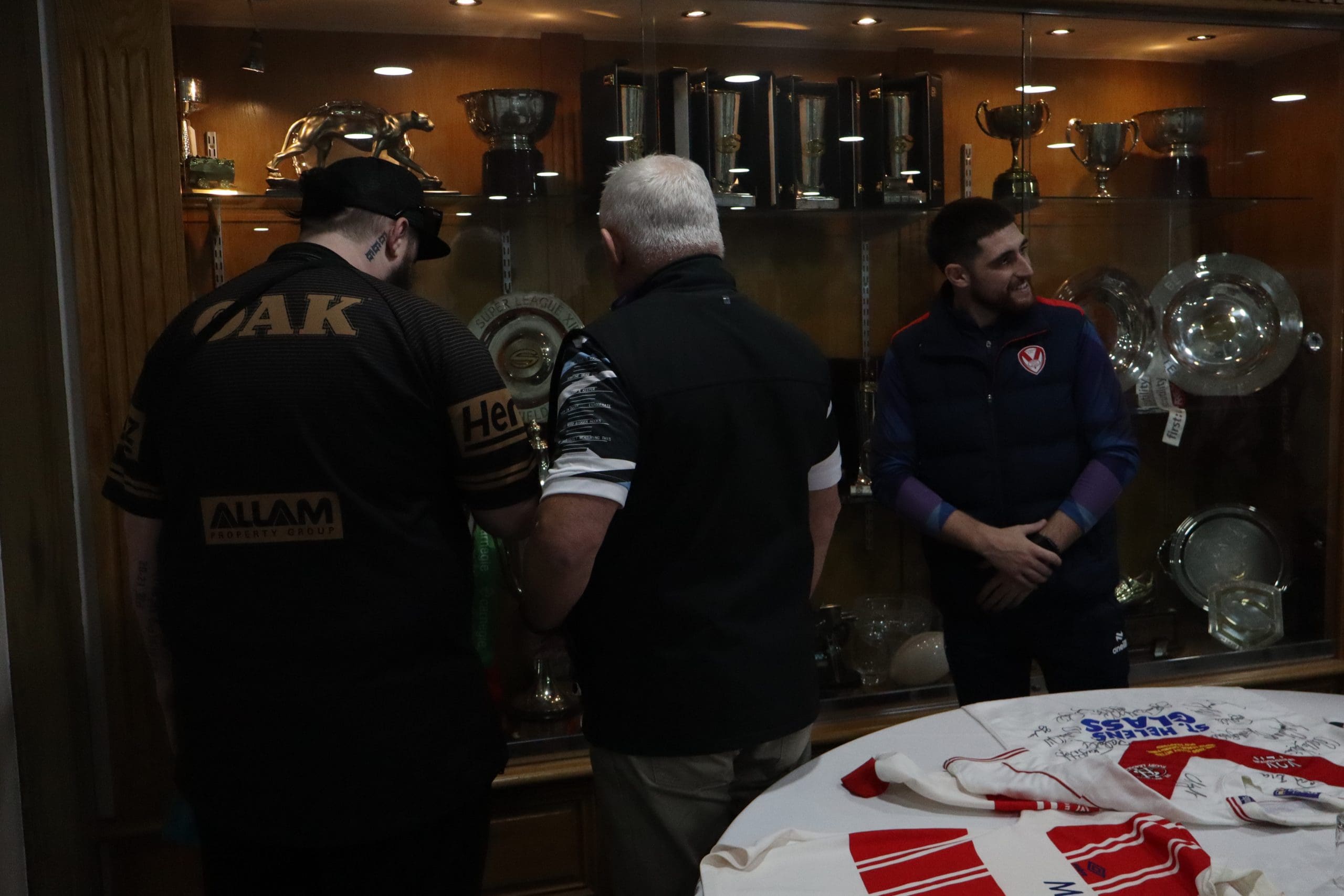 Once they had finished, they headed to the Hall of Fame Lounge for a bit of food before the main event of the tour. Former NRL and Super League players Justin Horo and Willie Mason were joined by Saints’ #6 Tristan Sailor for a short interview for the crowd.